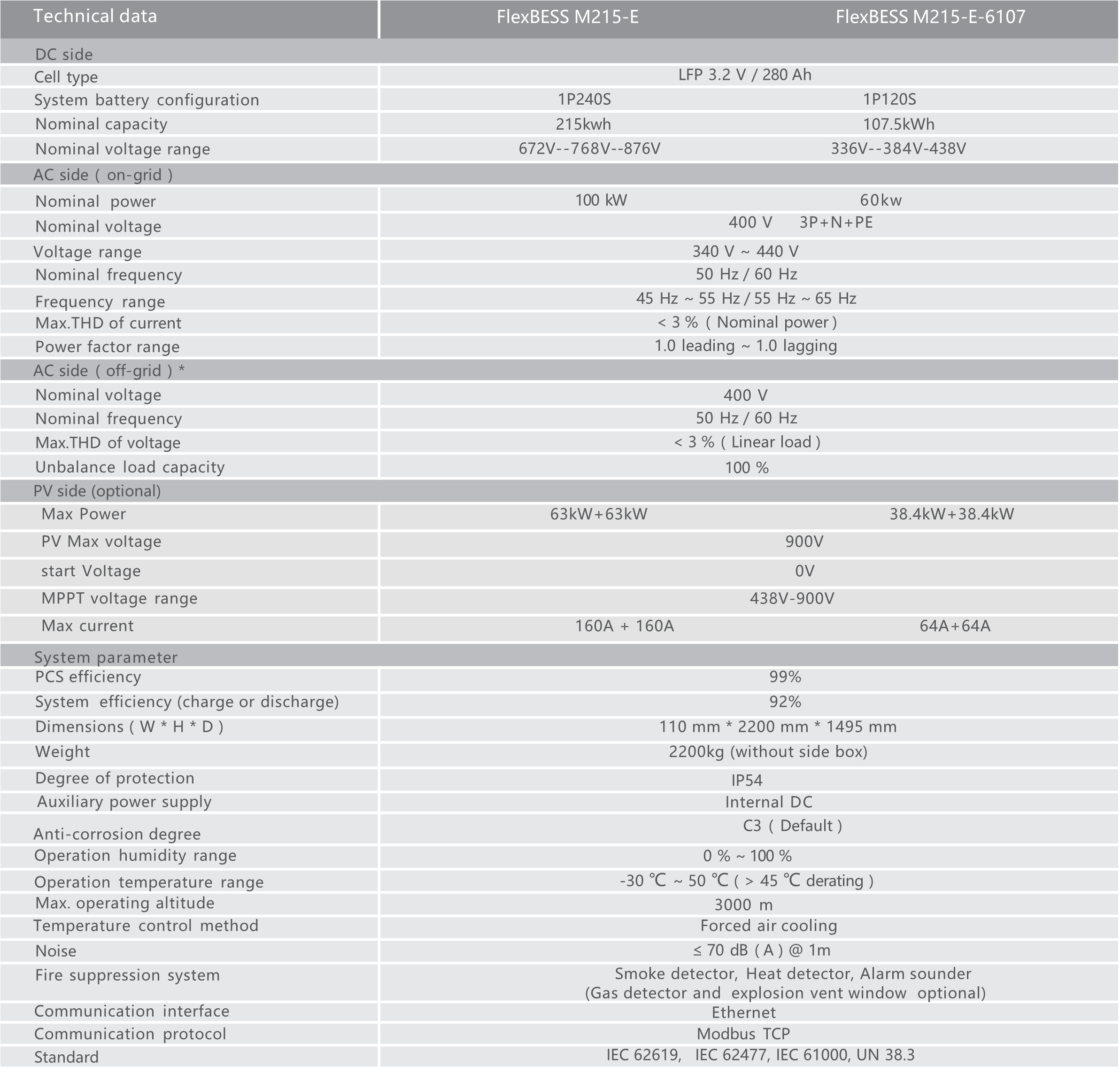 The M215 series is an outdoor energy storage system specifically designed for industrial and commercial applications. It is configured with side cabinets that can integrate MPPT, ATS, and transformers, supporting both grid-connected and off-grid applications. The M215 can be paralleled with up to 10 units through master-slave cabinet configuration, and the maximum energy storage system can reach 2.15 MWh.